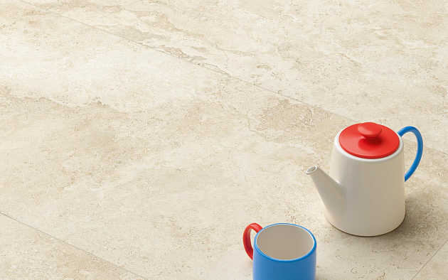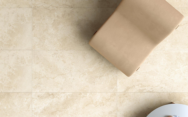Формат 60×120 см и матовая поверхность подчёркивают монументальный характер материала. Крупная плитка сокращает количество швов и позволяет каменному рисунку раскрыться максимально полно, создавая впечатление цельных каменных плит. Коллекция выпускается в двух цветовых вариантах. Aurelia Уайт — светлый керамогранит с деликатными переливами, который визуально увеличивает помещение и одинаково уместен как в лаконичных современных пространствах, так и в интерьерах классического направления. Aurelia Беж передаёт тот самый узнаваемый оттенок натурального травертина: тёплый, с выраженной игрой прожилок и ощущением благородной патины. Этот цвет задаёт атмосферу спокойной элегантности и хорошо работает в качестве основного фона для жилых комнат, ванных и кухонных зон.