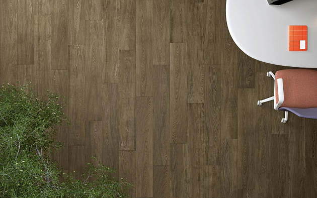 В линейке Coliseum появилась коллекция Ducale — керамогранит, воспроизводящий рисунок отборной древесины дуба. При разработке графики акцент сделан на передаче естественного характера материала: плавные прожилки, мягкие тональные переходы и практически полное отсутствие сучков формируют образ безупречно обработанной доски. Визуально покрытие воспринимается как натуральный паркет премиального сегмента, при этом сохраняя все технические преимущества керамогранита — устойчивость к влаге, механическим воздействиям и долговечность.